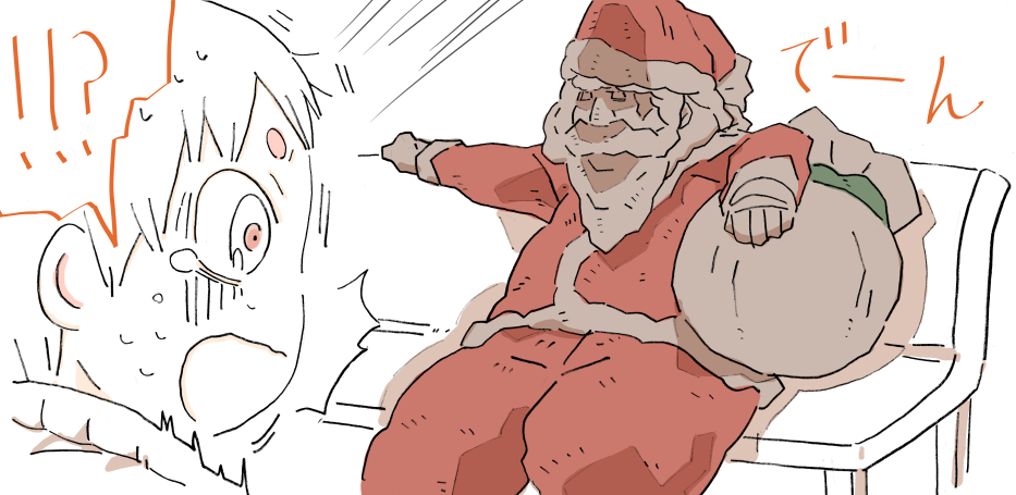 クリスマスの来訪者 息子1歳7ヶ月 2016年12月21日 息子に、サンタさんとは何か。 どんな存在なのか教えようと…な、お話。 驚かせたり怖がらせたりするつもりで 見せたわけではないんだ…ルー君… なんか、結果ごめんよ… サンタさんの置物にビビるとは思わなかったのだ(形がうろ覚え、すいません) この人がプレゼント持ってきてくれるんだよ? うぬぅ… まさか泣くまでいくとは。 店先にたまたまサンタさんの置物があったので 「これがサンタさんだ!」と見せてあげたのですけどね。 難しいの…子供心… それはさておき! 当日のプレゼントにどんな反応を示してくれるか。 と、思うと同時に… その日は遅くまで一緒に遊んだりするんだろうなあと…自分の体力的な心配。 ママはクリスマス飯を考えたり、当日の事を事前準備中。 こういうとき父ちゃんはあまり役に立てなくてスマンの… クリスマスプレゼントか~! 父ちゃんもサンタさんから貰えるなら ポケモン・ムーンが欲しいぞ!(自分で買えとの視線をキッチンから感じる) いつか息子と一緒にゲームとかも遊びたいな! まあ、まだまだ早いので 今のうちはブロック遊びとかトミカ遊びを一緒に楽しもうね、ルー君! せっせと隠してあるプレゼントにラッピングを施そうとする父ちゃんでした。 どんな風にしようかな? ラッピングをうまくできるようになりたいな~。 PR