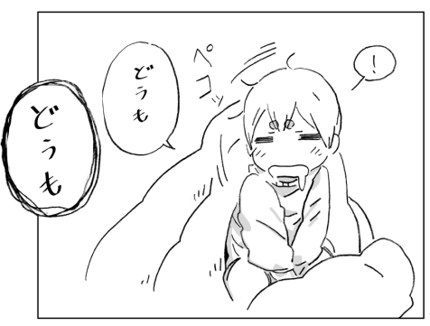 寝起きと応対 息子1歳9ヶ月 2017年02月14日 子供の言葉の使い方って面白い…! 息子起床!!!!のお話し。 まだまだ寝ぼけていた息子氏。 「おはよう」を覚えて欲しいのう… いや、「どうも」も間違ってはいない気もするが。 うん。そうだね。 と、ですね。 いただいていたコメントに返信いたしました! いつも読んでいただいてありがたいです… 返信がちょっと遅めな管理人ですが、今後とも宜しくお願いいたします…! PR